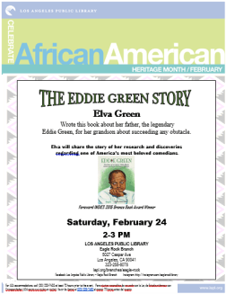 Visiting libraries and museums was a big part of my journey. There were also conventions. I spent many hours online. There was a lot of reading, emailing, learning how to get with social media. Reading how-to books and articles. Reading other people’s biographies to study writing styles. Studying how to get a publisher. Biting my nails. After my mother passed in 2010 I used my grieving time to focus on the book. I was retired. Footloose and fancy-free. I had time to put into this book. Today, now that it is published I have time to share Eddie’s story in the libraries here in Los Angeles. This photo of Eagle Rock library is where I will be on the 24th of February 2018. I hope to get more kids involved. Because after all, I began this writing venture to try and motivate my grandson who grew up while I was in this process. But I also want to bring Eddie out of the shadows of time and share his many contributions to the entertainment industry and beyond.