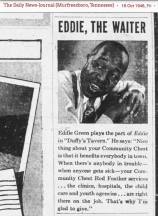 When I began this blog in 2014 I was still in the process of doing the research for the biography I wrote about my father. I had lots and lots of news articles about Eddie, I had pictures of Eddie that I didn’t even know existed before 2014 and I was finding more and more information about my father than I even suspected. As an entertainer in the early 1900s Eddie was busy. And his doings were routinely printed up in the local newspapers. Mostly the Black newspapers, but also in Billboard (which is still in business today). In the beginning they were just one-liners (Eddie Green at the Gayety), and then as time went by the articles became longer. Then interviews were printed as Eddie got more famous. Five yeas before Eddie died he was featured in the Paramount movie “Ed Gardner’s Duffy’s Tavern” (1945). The popularity of the Duffy’s Tavern radio program seemed like a good idea for a full-length movie in which the principal characters of the radio show were signed to play their same parts in the movie, Ed Gardner as Archie, Charles Cantor as Finnegan, Eddie Green as Eddie the Waiter, and Ann Thomas as Miss Duffy. Paramount used almost their whole roster of stars in this movie: